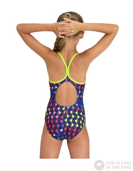 This swimsuit has a Muscleback style back. This cut is typical for training swimwear as it provides an optimal range of motion when swimming.