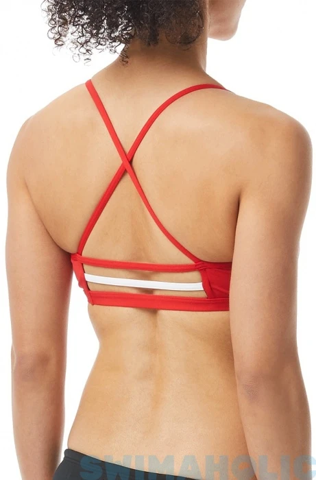 These swimsuits have crossed straps on the back. Crossback style swimwear provides maximum freedom of movement, but they have a very large back cut.